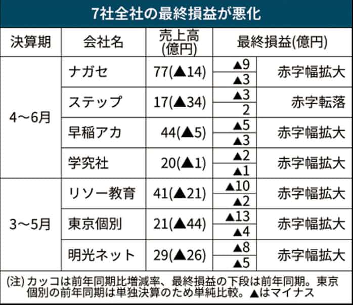 学習塾大手 7社全社の最終損益悪化 4 6月期 日本経済新聞