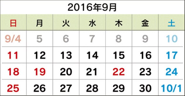 2016年のシルバーウィークは敬老の日を含めて最大3連休だけだった Try Inspire Com